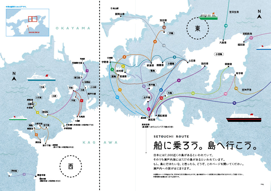 ほかにも、瀬戸内のブックカフェ&本屋さんリスト、瀬戸内を旅する人必見!瀬戸内航路図&時刻表(香川編)など、一冊まるごと瀬戸内と島と本にまつわる内容でお届けします。